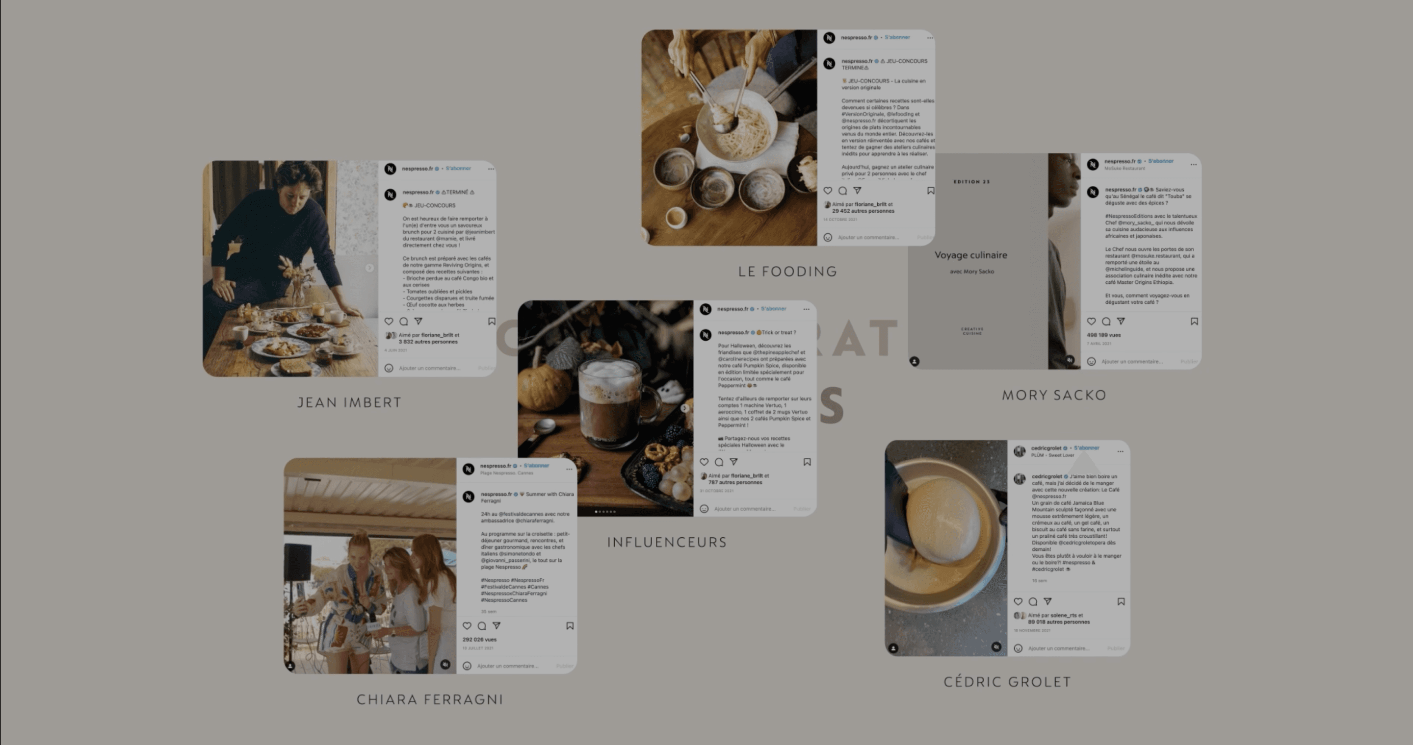 Pendant 3 ans j’ai collaboré avec les équipes social média de Nespresso. Mon travail passait par de la direction artistique pour les opérations commerciales et/ou collaborations, à la création & la réalisation de templates de posts pour des contenus fils rouges.