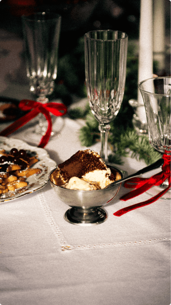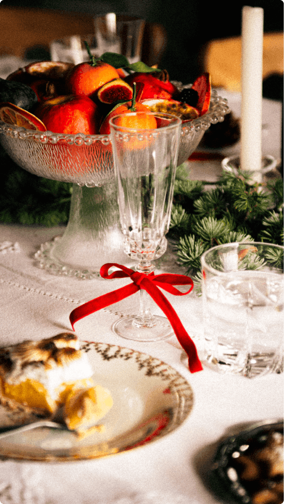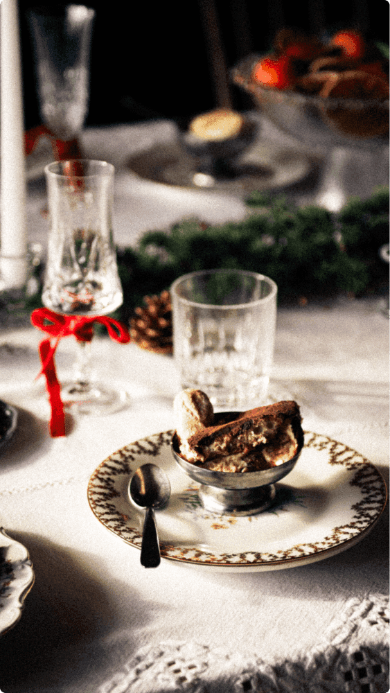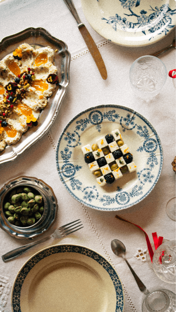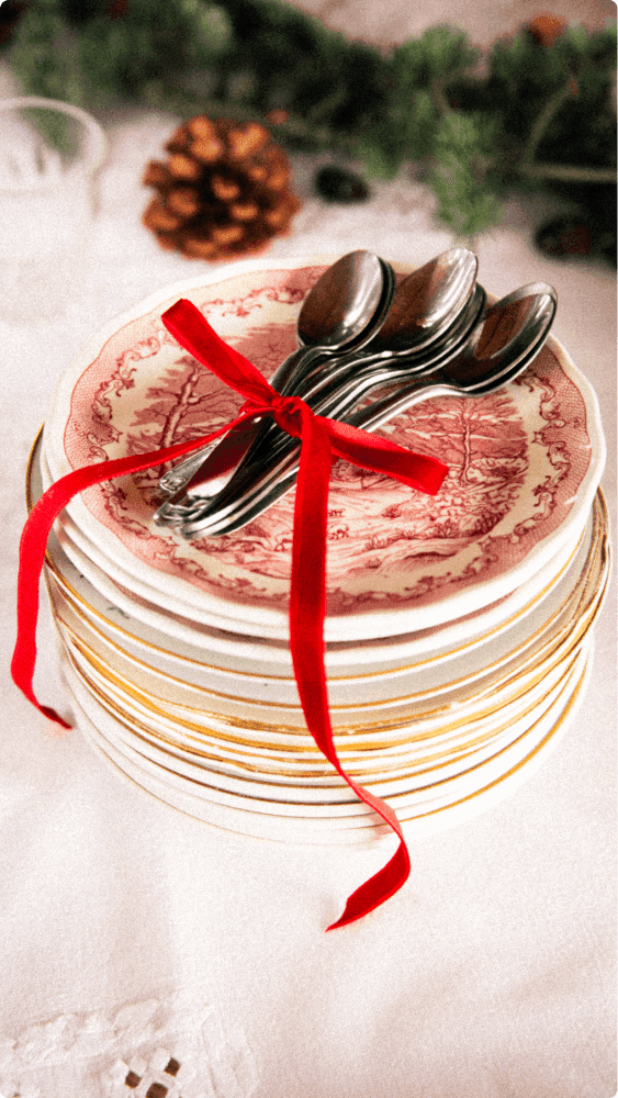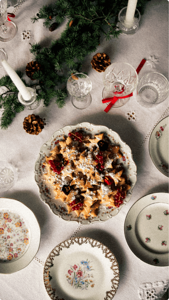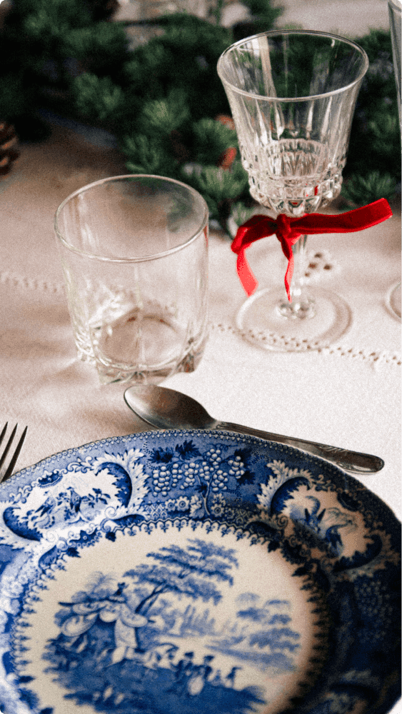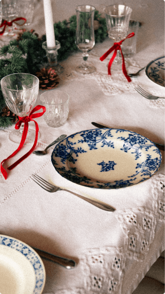 Vaisselles de nos mamies, marque de location de vaisselle vintage, souhaite s’inscrire dans un univers élégant et chaleureux. Pour les fêtes de fin d’année, je leur ai proposé